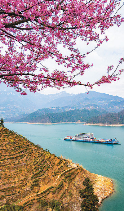 ">船舶行驶在长江三峡西陵峡湖北省宜昌市秭归县水域。 郑家裕摄(新华社发)