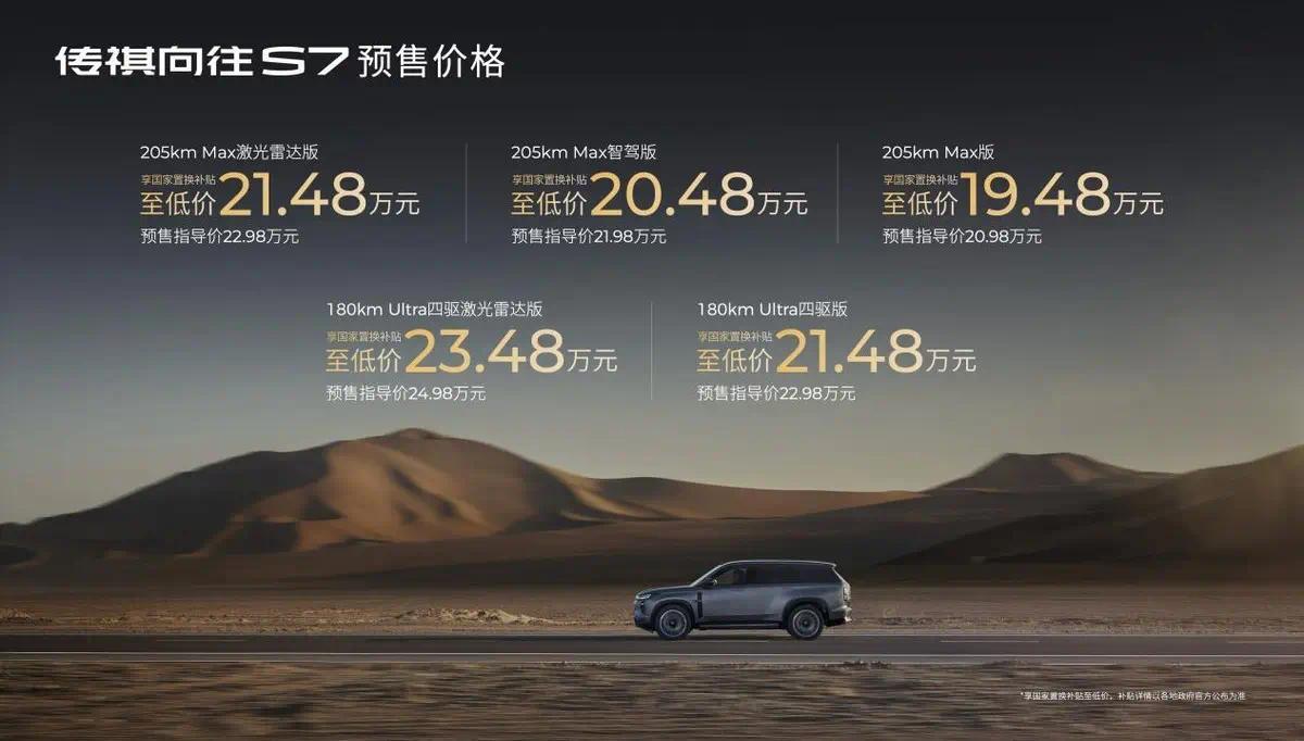 3月7日,广汽传祺发布了智能高端车系“传祺向往”,首发车型为传祺向往S7,定位中大型SUV,智能化是最大的亮点之一,向往S7预售价为20.98万-24.98万,置换+补贴最廉价19.48万-23.48万,最低20万即可脱手,同期下订就送价值2.5万的城市NDA。