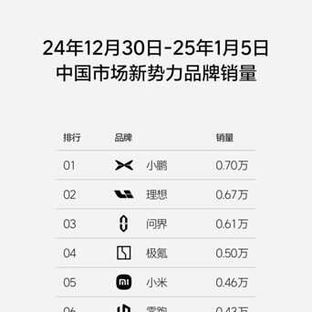 2025年新势力销量周榜曝光,小鹏第一,跳跃了理念念,完毕其保执了36周的销冠所在!有真理的是,2024年第一周,问界曾经跳跃了理念念。有网友问,周榜能阐述啥问题?话说,发周榜这事儿,即是理念念挑起的,友商大佬对此颇有微词。1月7日,理念念官微公布的是2024全年新势力销量名次,全年超50万台,理念念完全开头。大伙认为九游会J9,2025年谁能追过理念念?