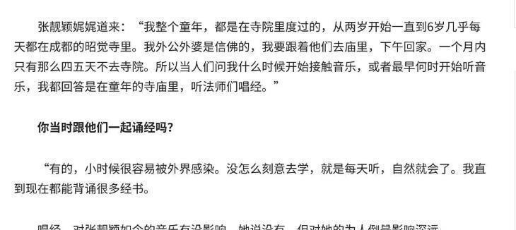 外公外婆信佛,常常带着她到寺庙礼佛、保祥瑞,跟在两东说念主死后的她,听着寺庙里法师的唱经,以为是音乐的她,对 唱歌产生浓厚趣味趣味。