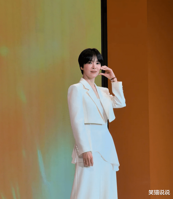 1月14日宋慧乔亮相某品牌居品的发布会行径。宋慧乔衣服全白的西装饰腰阔腿裤套装亮相发布会现场,这套白色西装让她看起来格外干练,很有职场风仪,又多了几分和煦。她留着极短的刘海短发,化着水蜜桃系的淡妆,看起来格外崭新素雅,气质依然很出众。