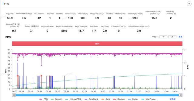 在《原神》须弥跑图测试中,iQOO Neo10 Pro+的证据一样令东谈主惊艳。在极高画质+60帧的树立下,半小时的平均帧率达到了60.2帧,1% Low帧数据也达到了56.8帧,险些与平均帧率捏平。比拟之下,另一款搭载骁龙8至尊版的旗舰手机天然平均帧率左近,但在1% Low帧上却存在赫然差距。这也解释了为什么iQOO Neo10 Pro+在游戏历程中险些感受不到卡顿,全体畅通性更为出色。