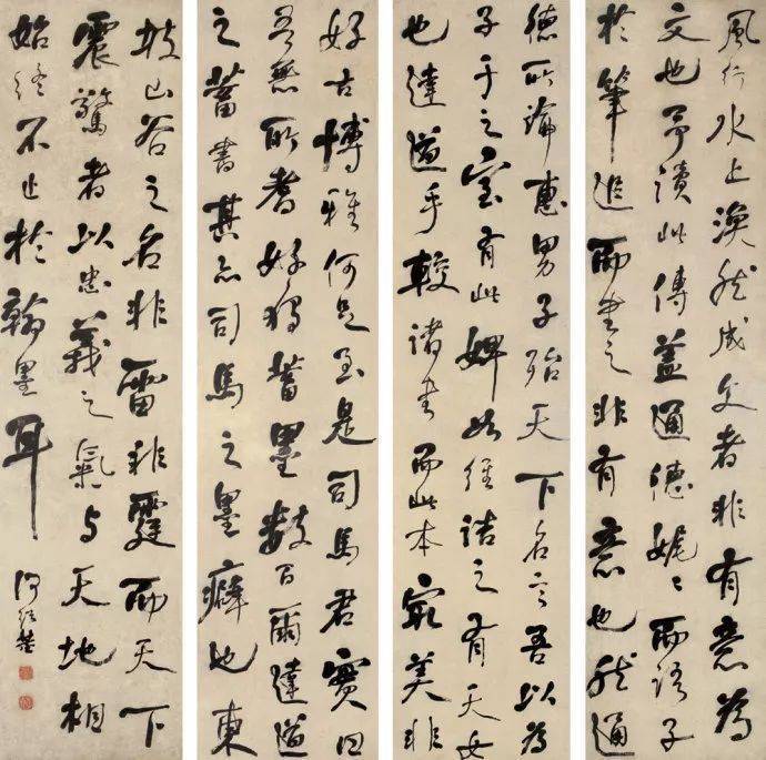 行草书更绝!何绍基把篆隶的古拙和行草的明白揉在沿路,笔画像蛇相通扭来扭去,可又扭得有章法。瞭望像一团乱麻,近看才发现每根“线”皆连着,气脉贯通,一气呵成。这哪是写字?分明是在跟纸较劲,跟我方较劲!