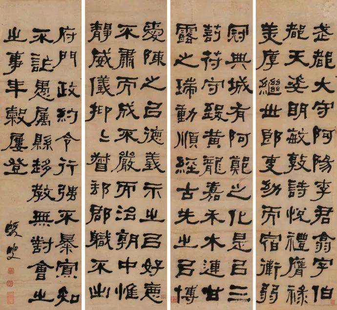 何绍基隶书《南安长王君平乡谈碑》节选屏