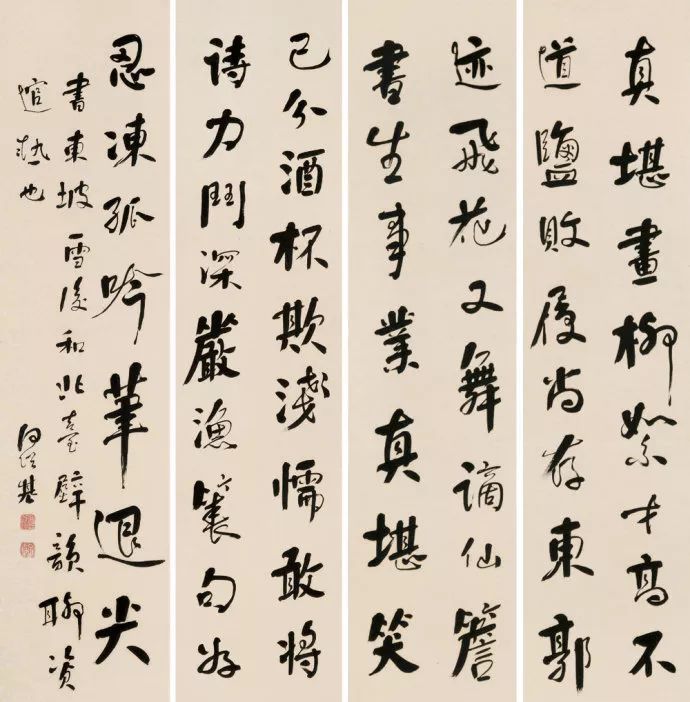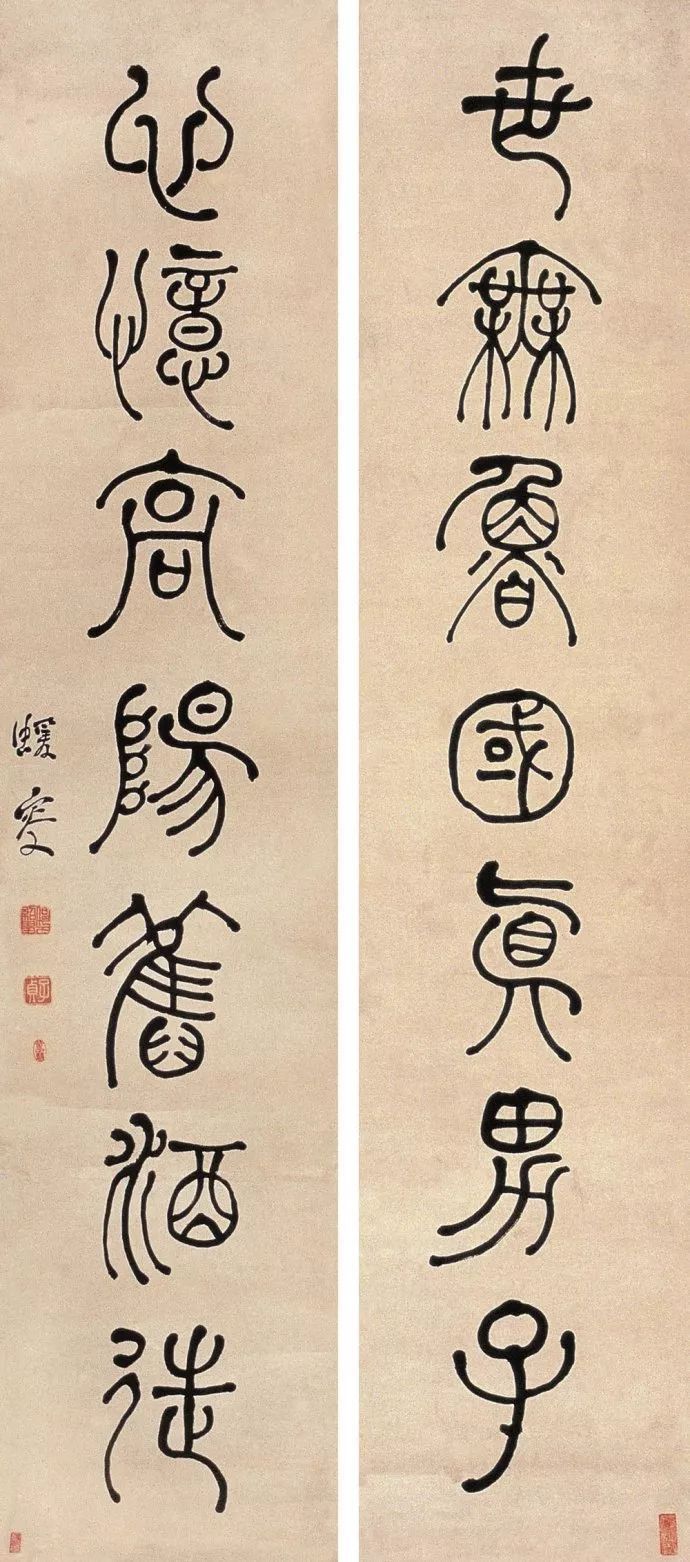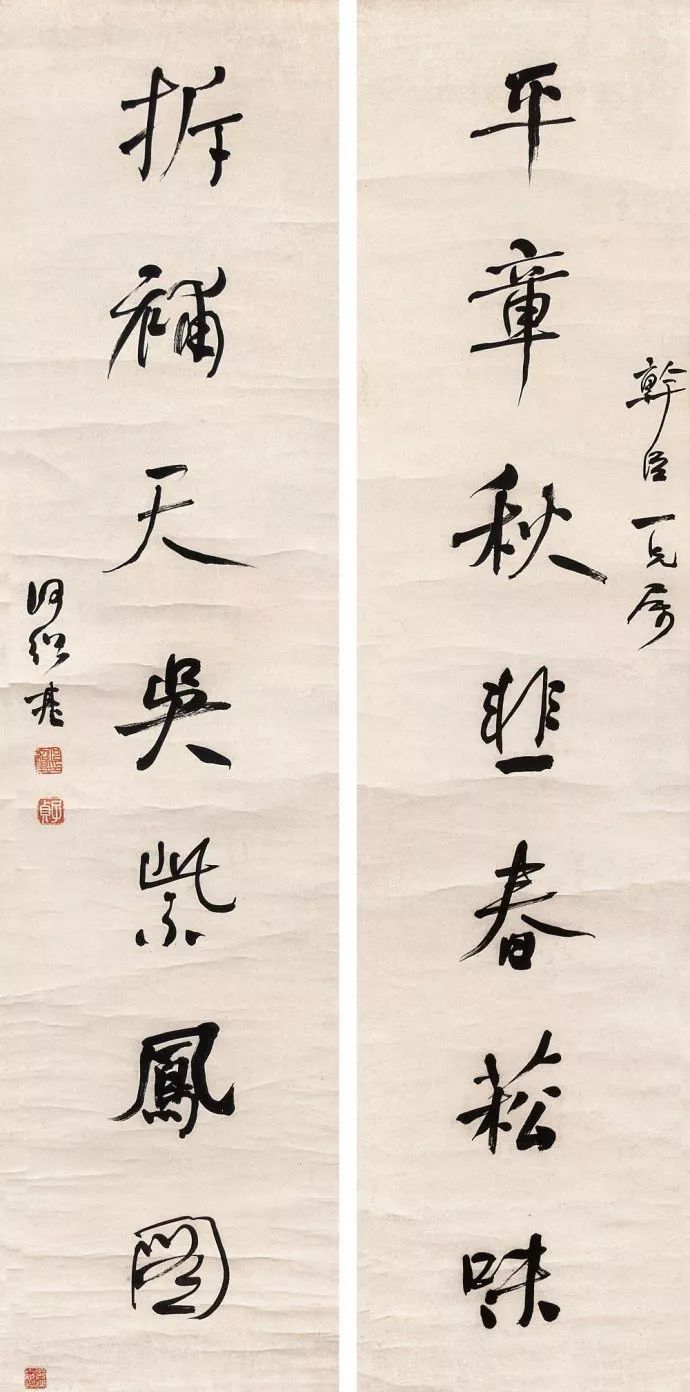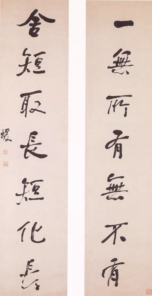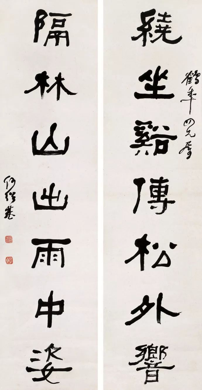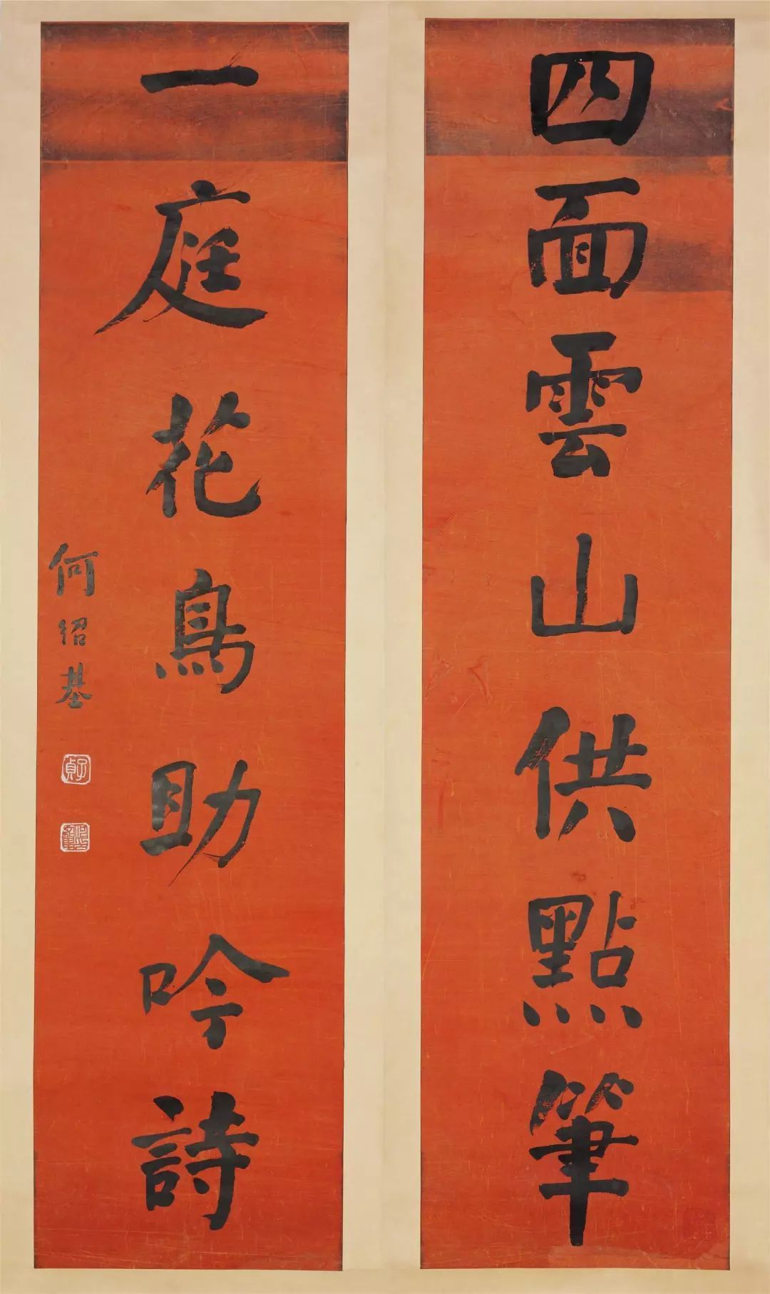 最逗的是,何绍基的字还带着“书卷气”。他鼓诗书,写字时总忍不住把文东谈主的酸劲儿掺进去。比如他写对子,上联“春风大雅能容物”,下联“秋水著作不染尘”,字里行间皆是文东谈主的自高和倔强,像在说:“我写字不为助威谁,就图个我方欢笑!”